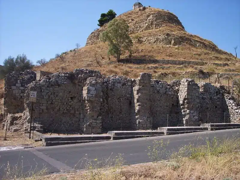 Questi ruderi sono situati alle pendici del monte Calvario, nel braccio di nord est del centro abitato. Si tratta di un edificio a pianta quadrata di circa 20 m per lato databile tra il I e il II secolo d.C. del quale affiorano due pareti perfettamente visibili dalla strada ai bordi della quale si trova. Lungo queste è possibile notare dei pilastri ammorsati nella muratura che fungono da contrafforti. Le altre due pareti sono inglobate nel promontorio.