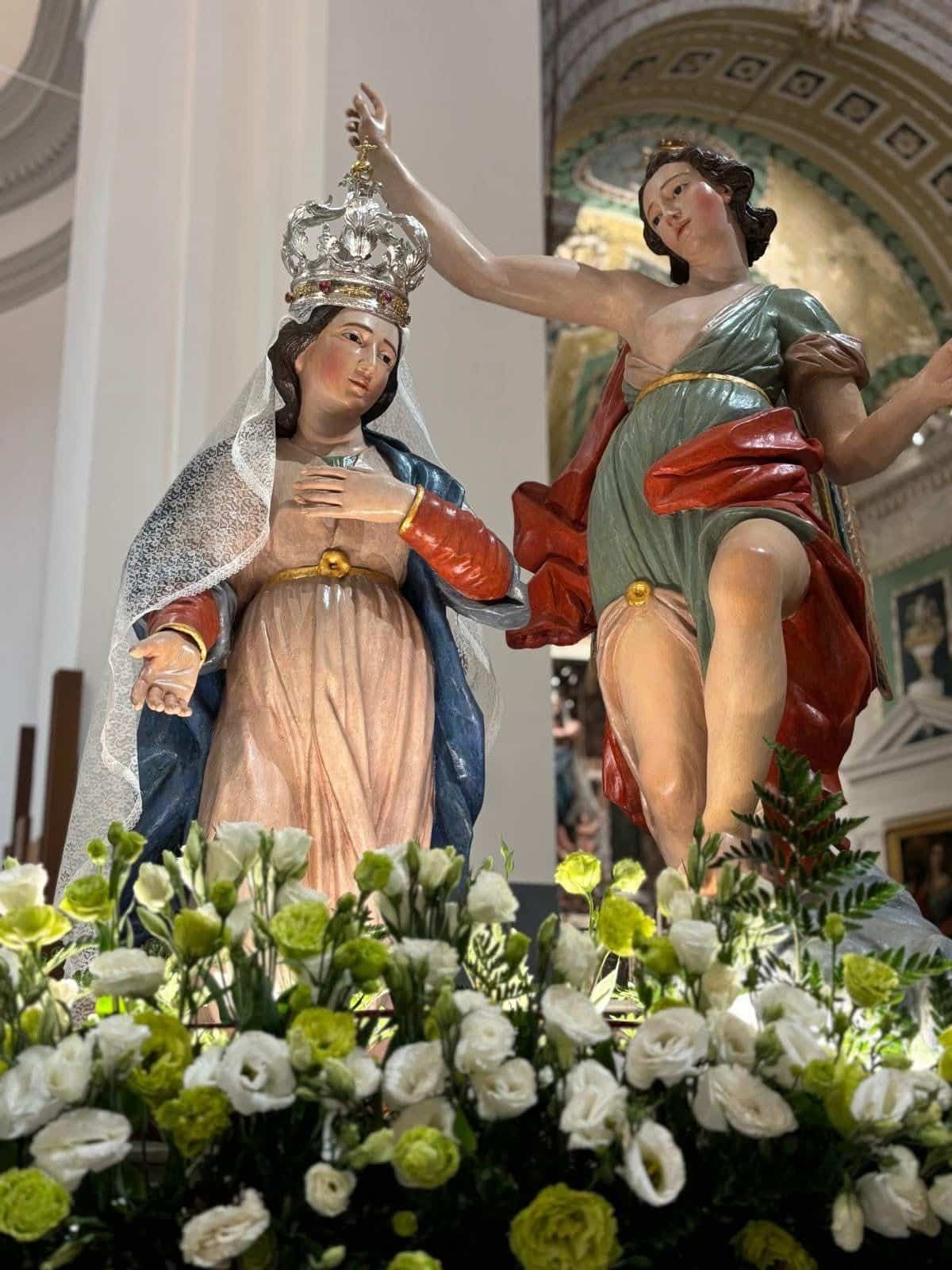 La festa dell’Annunziata ricorre il 25 Marzo ma ricadendo nel periodo di Quaresima, la si festeggiava, esternamente, la prima domenica di Pasqua. Da luglio 2012 l’organizzazione è affidata ad un comitato formato da un gruppo di devoti che da subito hanno sentito il desiderio di costituirsi, nel 2016, come Associazione Maria S.S. Annunziata. Da allora la festa viene celebrata la III Domenica di Luglio. La Statua e il fercolo dell’Annunziata, costituiscono un gruppo statuario in legno raffigurante la Madonna inginocchiata e l’angelo Gabriele annunciante (databile al 1700).L’elegante fercolo adattato alla statua, venne costruito nel 1926.