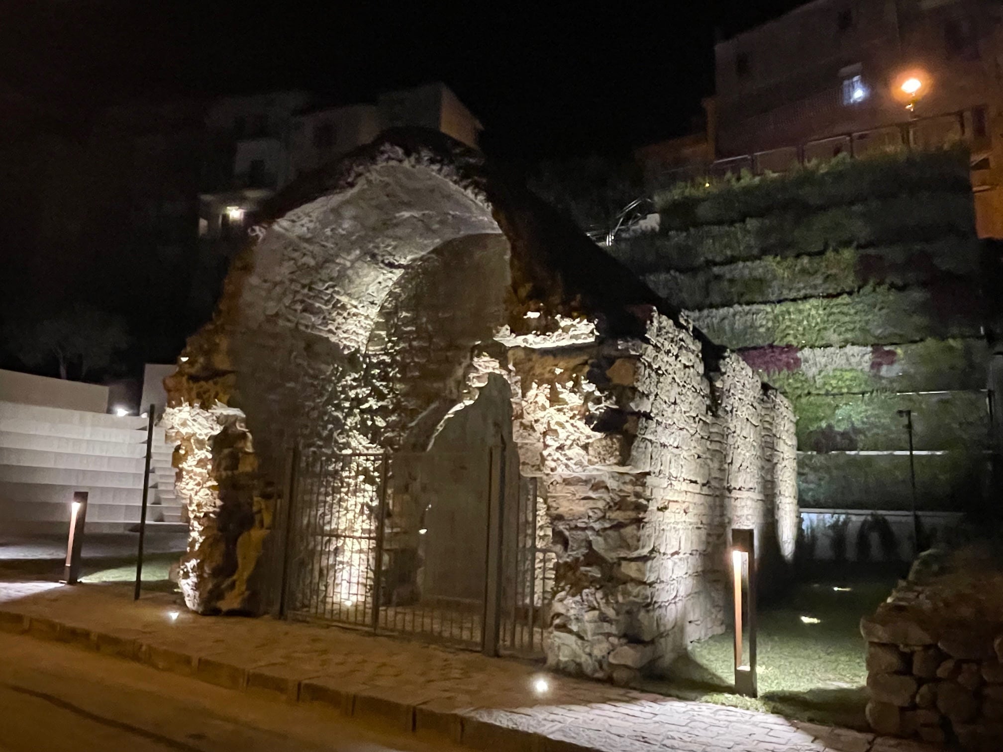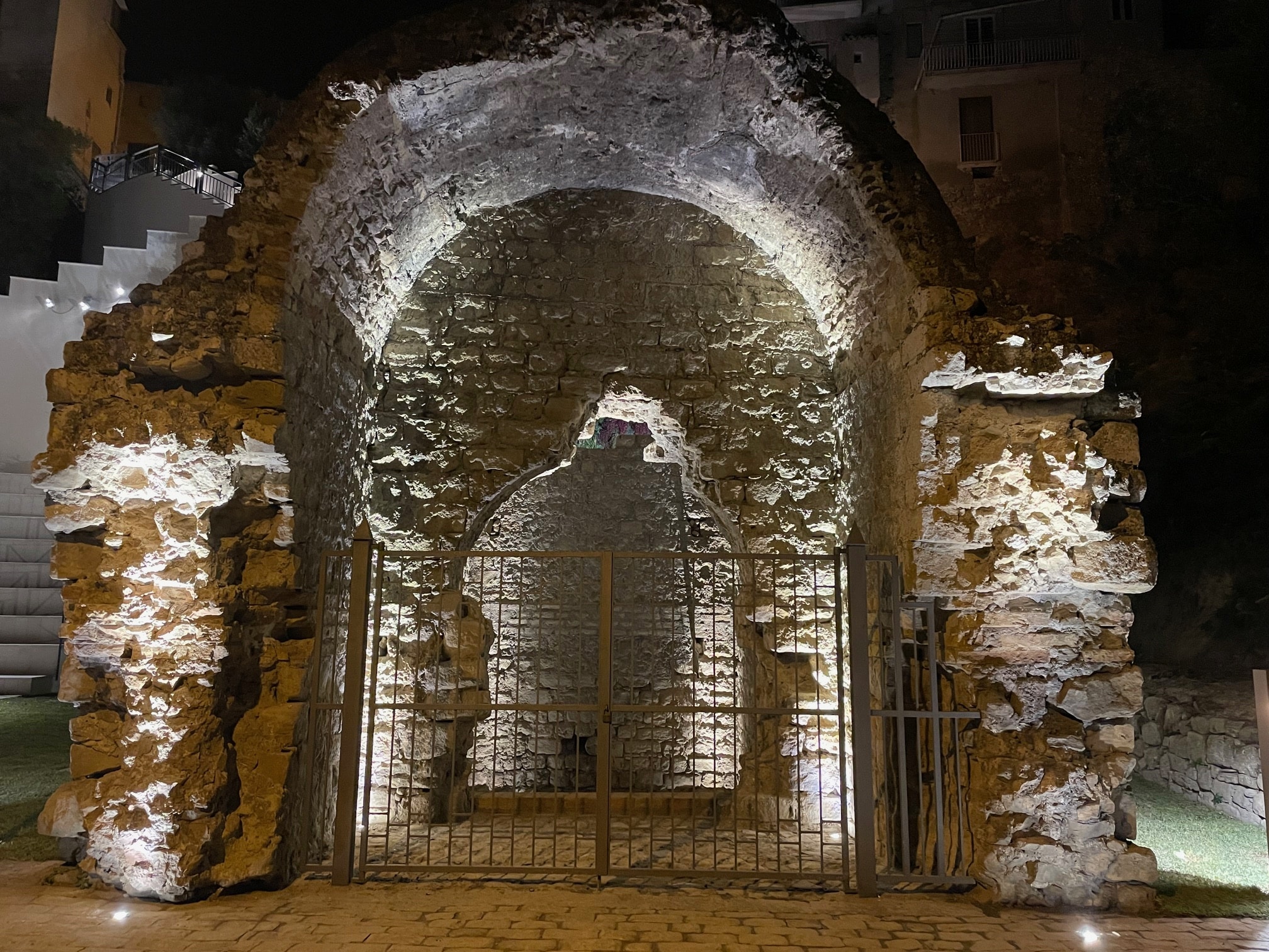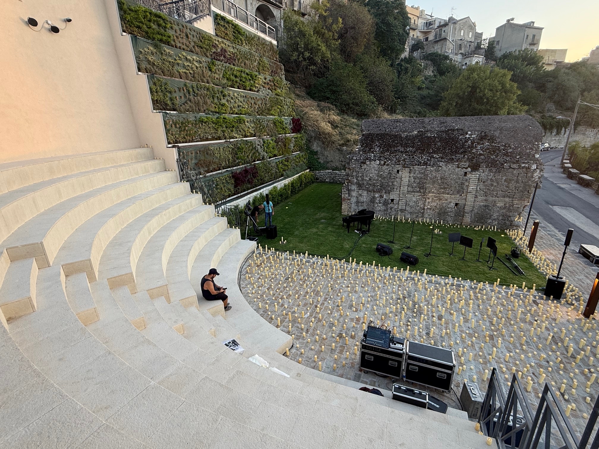 I lavori hanno interessato alcuni elementi che costituisco l’area: il recupero del teatro, una struttura degli anni Ottanta del Novecento che richiedeva oltre che una consistente manutenzione, un intervento di risanamento strutturale delle gradinate; la valorizzazione del muraglione di sostegno dove è stato realizzato il più grande giardino verticale pubblico della Sicilia; la pavimentazione adiacente il teatro, il nuovo impianto di illuminazione e la valorizzazione del Mausoleo Romano di Età Imperiale ( la Dogana) che è stato circondato da un grande prato inglese e corredato da una illuminazione artistica.